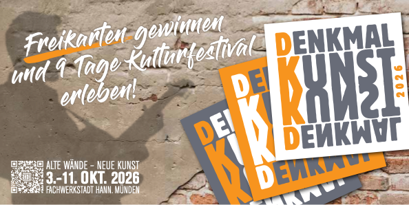 Das Kulturfestival Denkmalkunst-Kunstdenkmal ist wieder da! Vom 3. bis 11. Oktober 2026 wird die Fachwerkstadt Hann. Münden zum wahren Zentrum für Kulturliebhaber. Unter dem Motto „Alte Wände – neue Kunst“ verwandeln sich für neun Tage denkmalgeschützte und historische Gebäude in Galerien, Ateliers und Konzertorte. Die Stadt erlebt eine besondere Atmosphäre, die Besucher und Einheimische gleichermaßen fasziniert. Längst vergessene Fachwerkhäuser werden zu Orten, an denen Geschichte und zeitgenössische Kunst eine aufregende Verbindung eingehen. So küßt die Kultur alte Häuser wach.